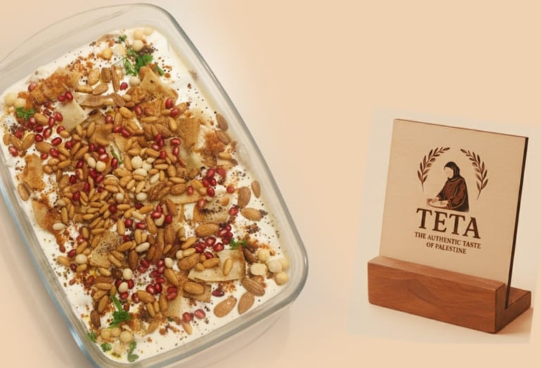 Teta’s Fattoush is inspired by the fertile Palestinian fields, with fresh vegetables, crispy pita, and the rich essence of pomegranate and molasses. It brings nourishing flavor, vibrant color, and a celebration of life to the Palestinian table.