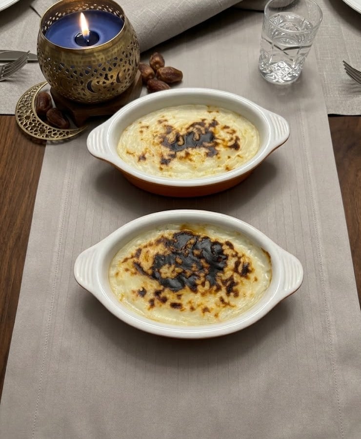 The green, lightly roasted wheat grains are carefully cooked with tender chicken. Each grain of freekeh glimmers like a memory, carrying within it the warmth of home and the refined grace of ancient heritage.